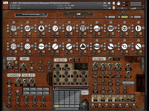 The Celebrated Fictional Mega Organ of Steamlord Cornelius is the greatest and most famous organ that never existed! This instrument is a multi-layered beast that has 50 incredible voices, including: genuine ship horns, calliopes, tigers, whales, screams, metal guitar, sax, contrabassoon, car horns and many many more. This can be as wild or reserved as you want! There is loads of functionality, including a tweakable randomisation engine and a range of parameters for detailed control over each voice. Additionally there are also 100 presets to get you started.