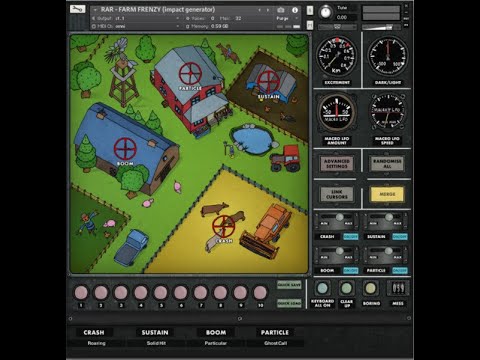 Farm Frenzy is an impact generation instrument, perfect for chorus downbeats, drops and accents. We’ve gone a little off-piste with the GUI, but we’re quite comfortable with our ‘issues’ and hope you enjoy them too! It puts you in control of a B-17a Random Missile Projector and hovers you over your arch-rival’s farmyard. Don’t hold back now!